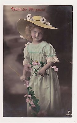 PRETTY LITTLE EDWARDIAN GIRL WITH FLOPPY HAT AND DAISIES ORIGINAL VINTAGE RPPC