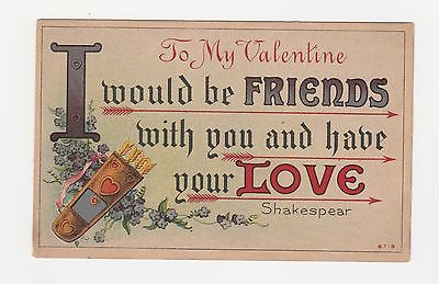 Vintage VALENTINE Postcard, Shakespear, Arrow Quiver