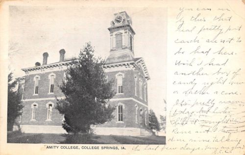Title (ebay affiliate link): College Springs Iowa~Amity College~Main Clock Tower~1907 B&W Postcard