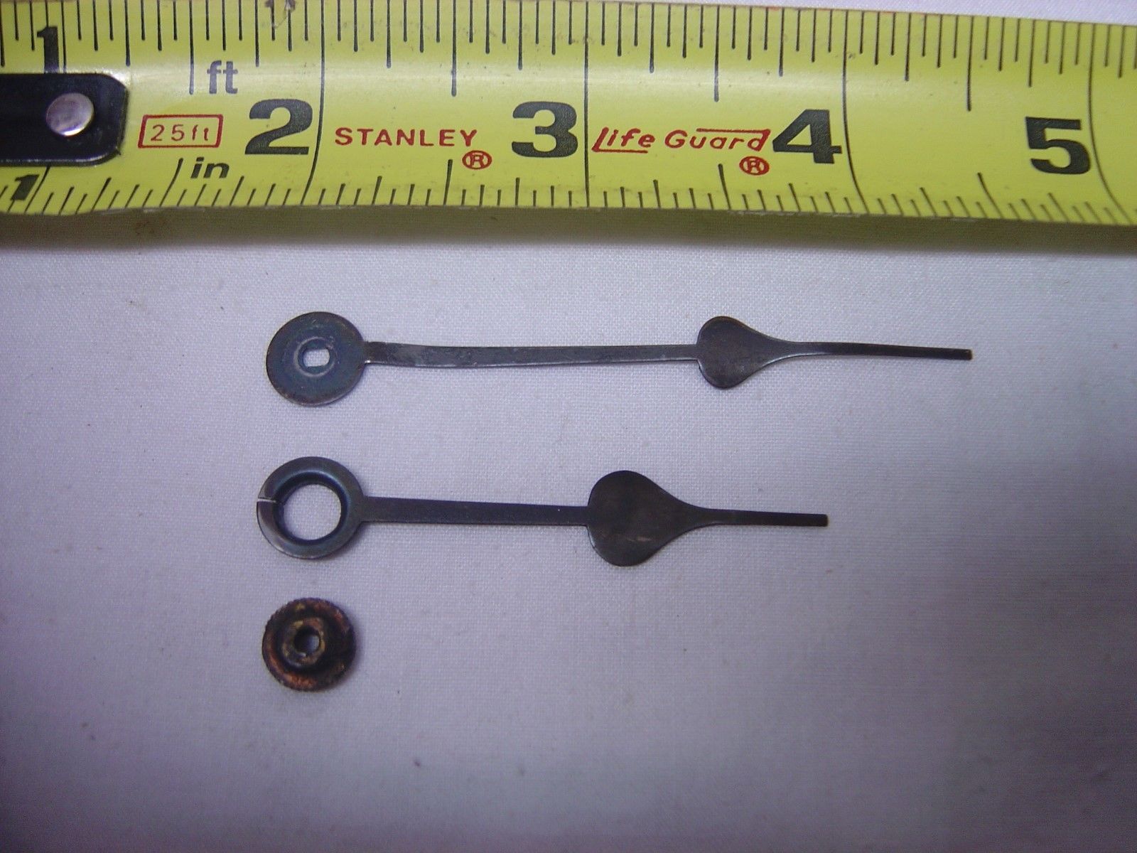 Title (ebay affiliate link): Original Antique Spade mantel clock hands with threaded nut, clock parts