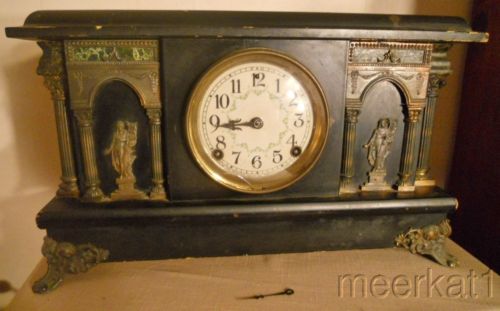 Title (ebay affiliate link): ANTIQUE SESSIONS LONG MANTEL CLOCK TO RESTORE - 8 COLUMNS, LADIES W/LYRES