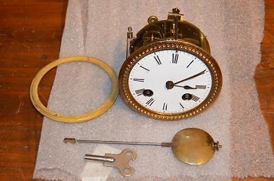Antique Small 3 1/8" Porcelain French Japy Freres Clock Movement & Pendulum Runs