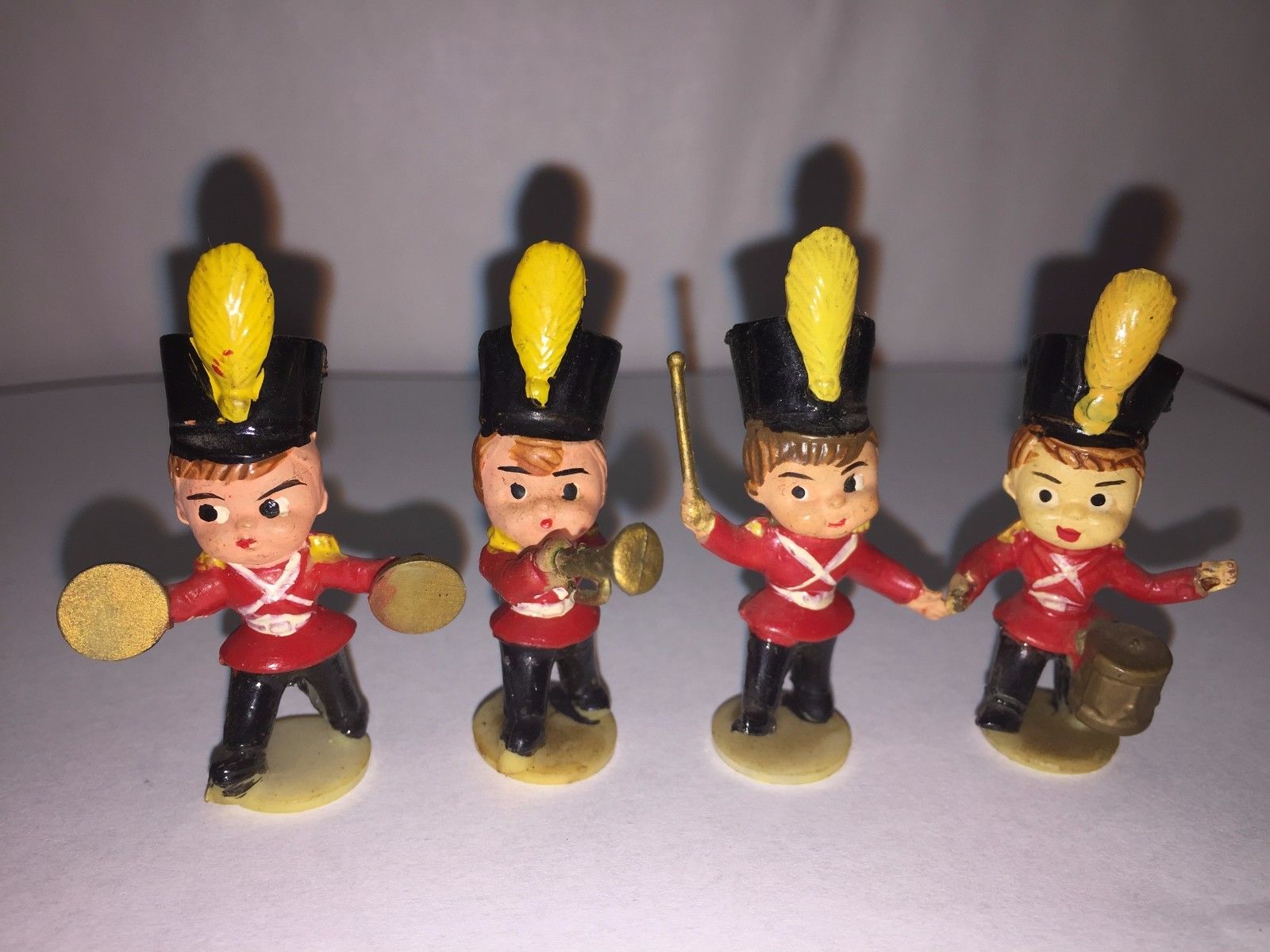 Title (ebay affiliate link): Lot 4 vintage Marching Band Boy figurine miniature display train village or Cake