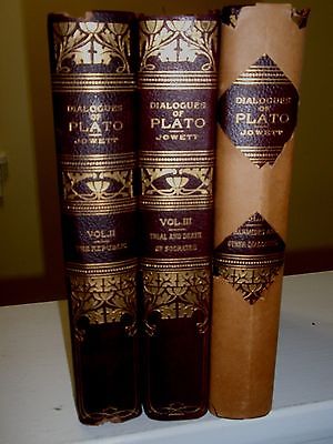 Title (ebay affiliate link): Dialogues of Plato 1899 Jowett 3 Volumes Leather Spine Deluxe Edition