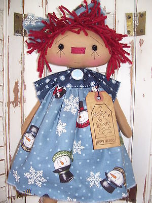 Primitive Raggedy Ann Doll Snowflake Winter Annie folk art Snowman flakes