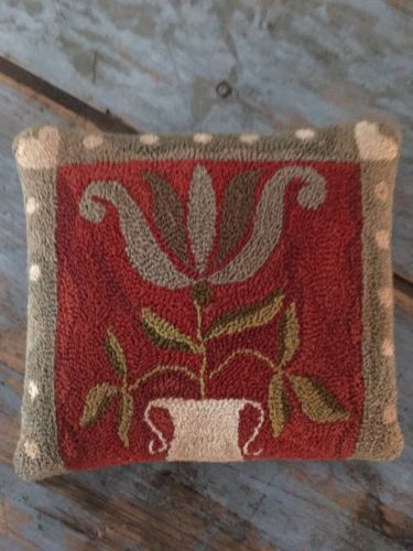 PRIMITIVE FOLK ART HANDMADE PUNCH NEEDLE- HEART TULIP PILLOW/PIN KEEP