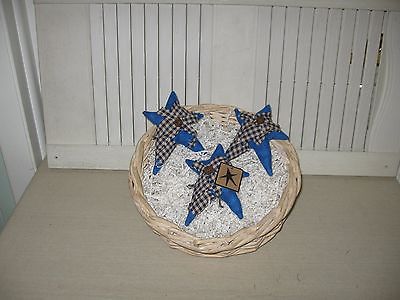 Handmade Primitive Fabric Bowl Fillers "Stars" Blue Set of 3
