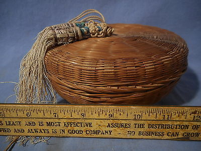 antique small hand woven Basket with lid Primitive vintage estate find