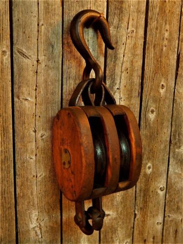 Title (ebay affiliate link): Antique Primitive Wood Double Barn Pulley "Iron Bushed" w/ Star STUNNING!