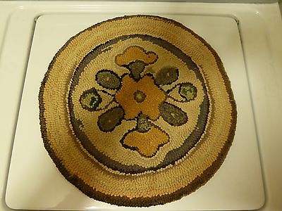 Antique Hand Made Folk Art Floral Hooked Rug Chair Mat lined 16 inch