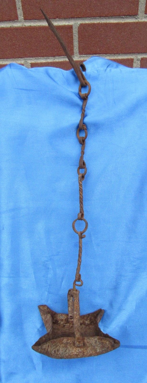 Title (ebay affiliate link): Rare Antique 4 Way Grease Lamp Blacksmith Made Primitive Decorated Iron Forged