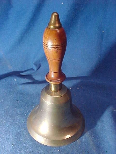 19thc PRIMITIVE Wood + BRASS SCHOOL BELL 7"