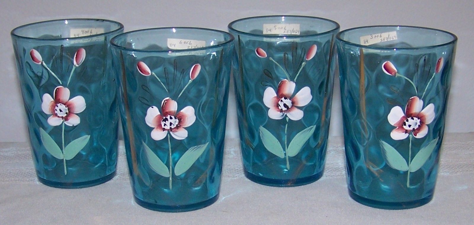 Title (ebay affiliate link): 4 VICTORIAN BLUE INVERTED THUMBPRINT W / ENAMEL DECORATION TUMBLERS 1800''S