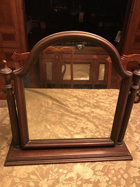 Vintage Wood Frame Shaving Mirror Table Top/Dresser Swivel