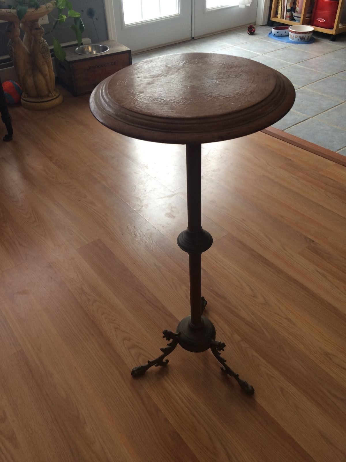 Brass and copper stand with wood top that spins #251