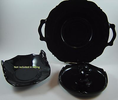 Elegant Glass L.E. Smith Ebony Black Amethyst Mt. Pleasant Lot of 2 Plate & Tray