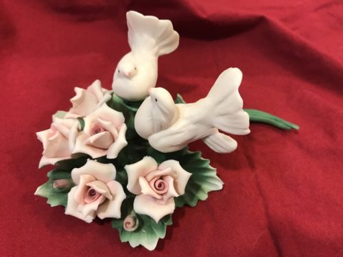 Capodimonte Set Of Doves W/pink Roses Made In Italy