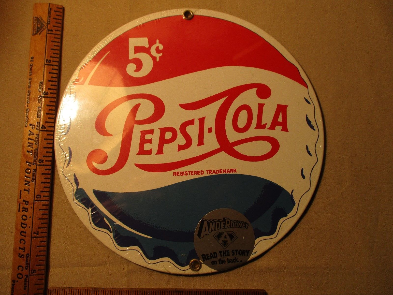 Pepsi Cola Sign Ande Rooney Porcelain Enamel Excellent NOS SEALED Condition
