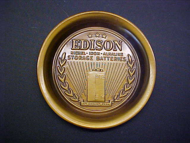 Title (ebay affiliate link): Thomas EDISON STORAGE BATTERY Advertising Tip Tray Coaster MINT Condition