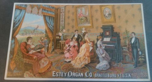 Title (ebay affiliate link): 1874-1885 ESTEY ORGAN Victorian Trade Card Mayer, Merkel and Ottmann Vermont