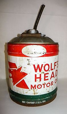 Large Vintage Wolf''s Head Motor Oil 5 Gallon Metal Can Gas Station Sign w/ Spout