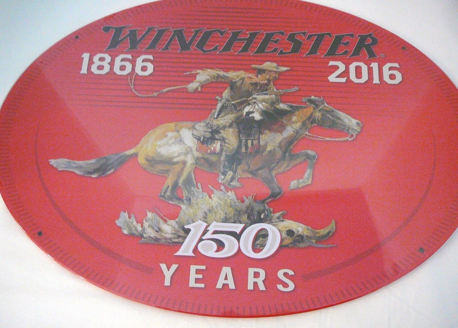 Winchester Rifle Oval Tin Sign - NEW - 150 Years 1866-2016 - Rockin W Brand