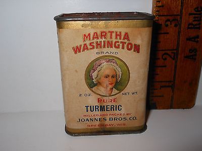 Title (ebay affiliate link): Vtg Martha Washington brand Turmeric spice tin/Joannes Bros. Co Greenbay, WI