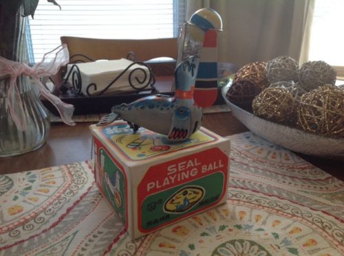 Vintage Wind Up Toy Seal Playing A Ball with Box Works