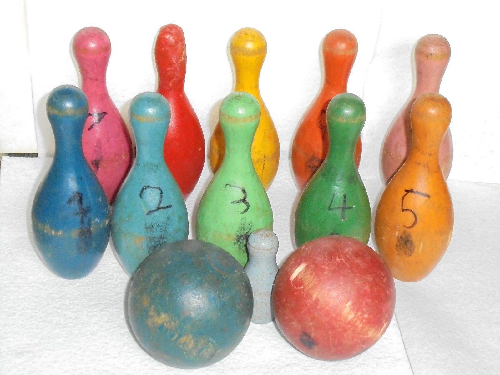 Title (ebay affiliate link): Vintage Miniature Bowling 10 Pin Set with 2 Balls Antique Wooden Bowling Game
