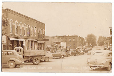 Erly RPPC Business Section Street Scene Coca Cola Signs 1930s Old Cars Shoals IN