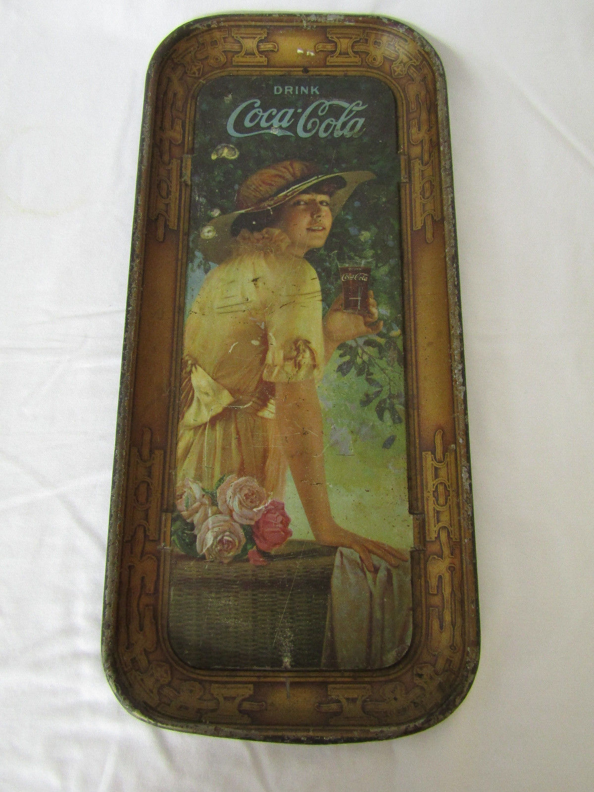 RARE 1916 COCA COLA ELAINE WORLD WAR 1 SERVING METAL TRAY(#4596)