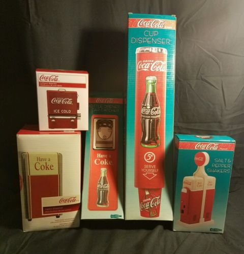 Title (ebay affiliate link): (5) Coca-Cola Cup Toothpick Napkin Dispenser Salt & Pepper Shakers lot of 5 NEW