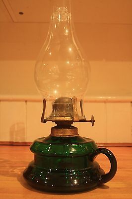 Title (ebay affiliate link): Bottle Green Vintage Oil Lamp, Working Oil Lamp, Brass Burner