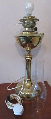Title (ebay affiliate link): ANTIQUE LARGE BRASS OIL LAMP, ''LAMPE VERITAS'' CONVERTED TO ELECTICITY
