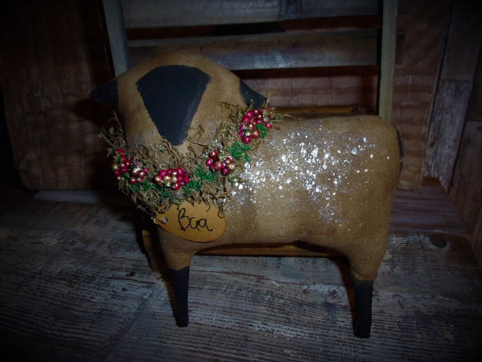 Title (ebay affiliate link): ** Primitive SPARKLED SHEEP COUNTRY OL WINTER 9X8IN Rusty doll**