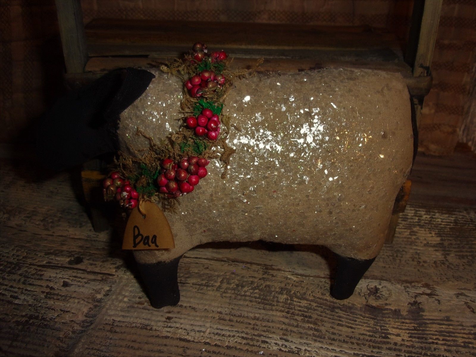 Title (ebay affiliate link): ** Primitive 6x7in SPARKLED SIDE VIEW SHEEP SHELF SITTER WINTER Rusty doll**