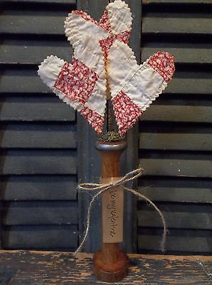 Primitive Valentine''s Decoration - "Flattie" Quilt Hearts in Vintage Wood Spool