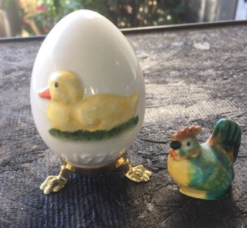 GOEBEL 1979 Porcelain Duck Egg On Golden Feet **W Germany With Small Rooster
