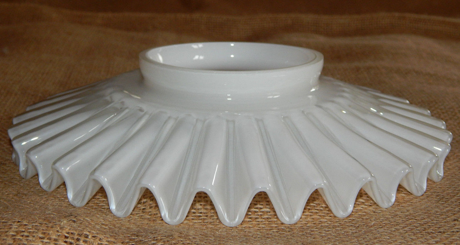 Title (ebay affiliate link): Antique Ruffled Milk Glass Petticoat Oil Lamp Shade 2 7/8" Opening at Fitter #A