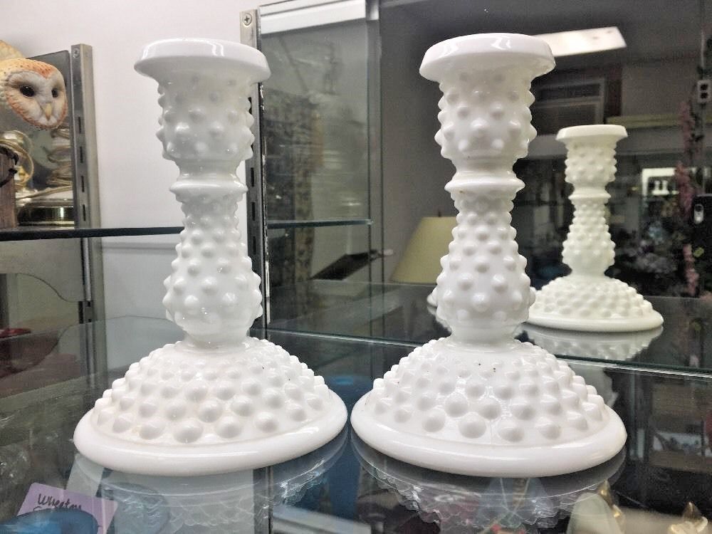 Title (ebay affiliate link): Fenton Milk glass Hobnail Candle Holders Candlesticks Milkglass