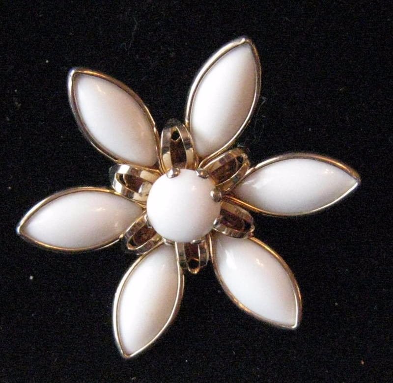 Title (ebay affiliate link): Vintage Brooch Pin White Milk Glass Rhinestone Flower Gold tone Jewelry lot j