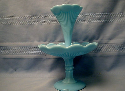 Epergne Vase Portieux Vallerysthal PV France French Blue Opaline Milk Glass