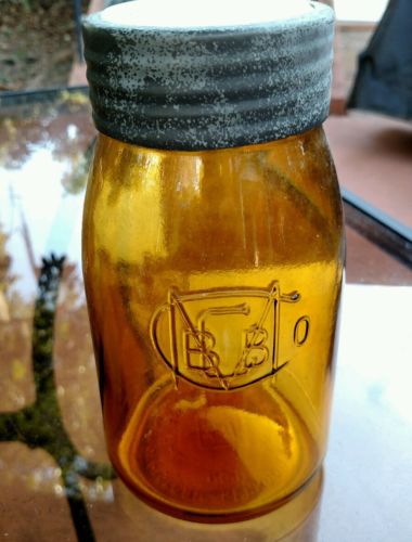 Title (ebay affiliate link): Amber BALL BROTHERS GLASS MFG CO BUFFALO FRUIT JAR Milk Glass Insert 1976