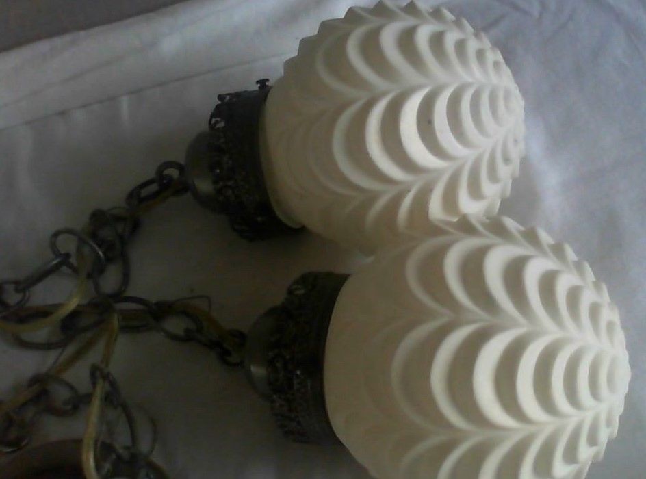 Title (ebay affiliate link): Vintage Milk Glass Drapery Swag 2 Globe Pendant Hanging Light- Mid Century Retro