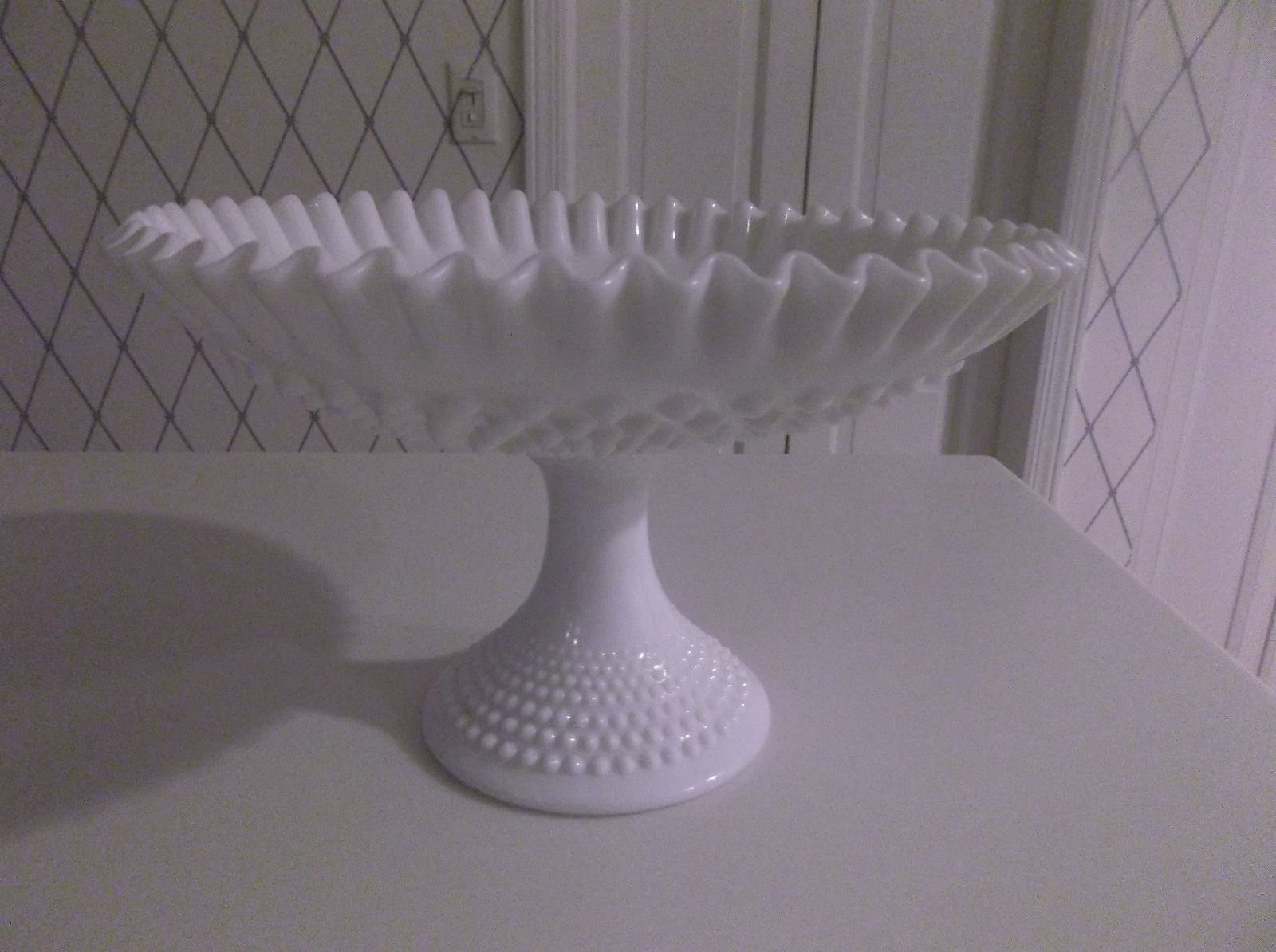 Title (ebay affiliate link): VINTAGE FENTON WHITE MILK GLASS HOBNAIL LARGE COMPOTE FRUIT BOWL-7" TALL-EXC