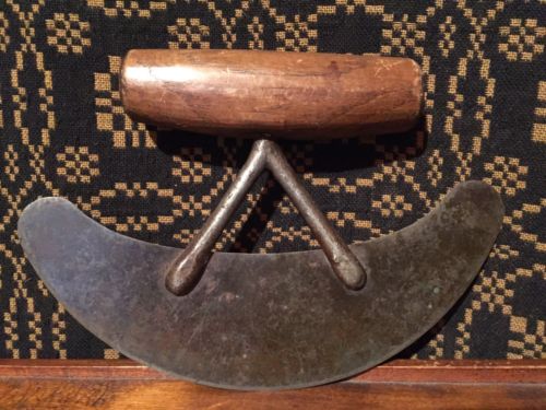 Title (ebay affiliate link): Antique Primitive Farm Kitchen Wood Handle Food Mincer Cutter Chopper AAFA