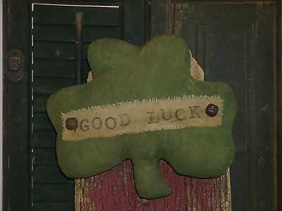 Primitive Grungy 9" Good Luck Irish Shamrock Hanger ~ Ro''s Cluttered Attic