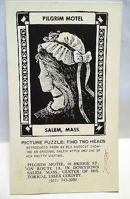 1967 PICTURE PUZZLE POSTCARD PILGRIM MOTEL SALEM MA,SALEM WITCH & VICTIM
