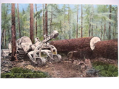 1944 POSTCARD MODERN LOGGING TRACTOR AT WORK