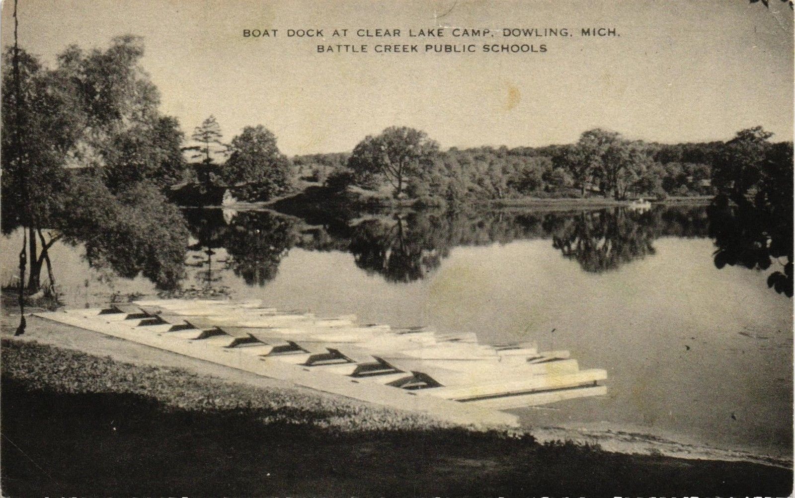 DR JIM STAMPS US BOAT DOCS CLEAR LAKE CAMP DOWAGIAC MICHIGAN POSTCARD ARTVUE
